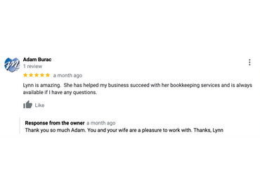Lynn is amazing. She has helped my business succeed with her bookkeeping services and is always available if I have any questions.